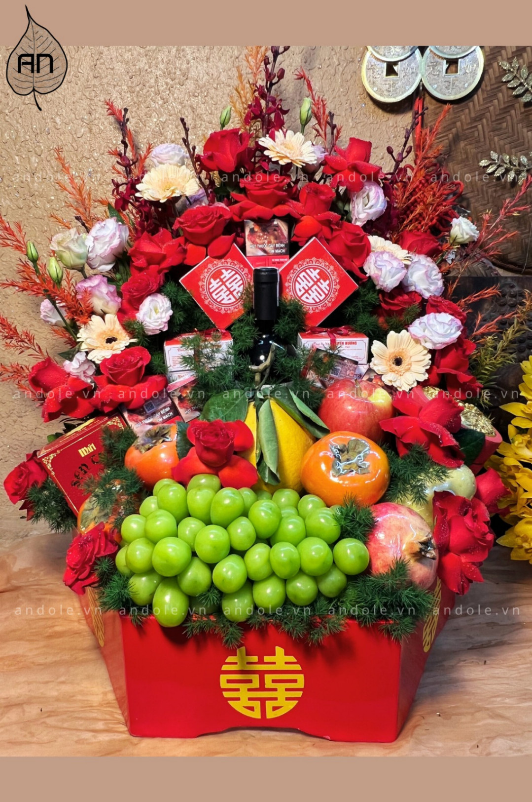 - Lựa chọn nguyên liệu: Chọn hoa quả tươi ngon, bánh kẹo cao cấp, rượu và trà phù hợp.